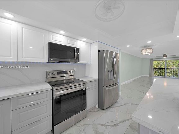 Welcome to Residence 406 in the heart of The Greens of Inverrary – an exclusive 55+ gated community known for its lush surroundings & peaceful ambiance. No expense was spared in this fully remodeled 2 bed/2 bath condo offering modern comfort with timeless elegance. Residence features high-end finishes throughout including porcelain floors, quartz countertops, recessed lighting, LG stainless steel appliances, spacious glass showers, and custom closet built-ins in primary bedroom. Balcony over looks lush greenery and can be accessed from both the living room and primary bedroom. Community offers resort-style amenities, including a clubhouse, fitness center, tennis court, billiards room,and pool. Building has undergone full renovations and is in the final phases of 40 year recertification.