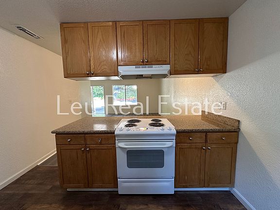 Large, 2br/2ba, range, d/w, refrig, garbage disposal and downstairs unit. Central heat & air, tenant pays electricity & gas. 1 Covered parking space. Laundry on site. Owner pays water/sewer/garbage. Small pet negotiable. 1 covered parking space. Offered by Leu Property Management DRE #01860066. $45 application fee All Adults must have credit score of 600 or higher
