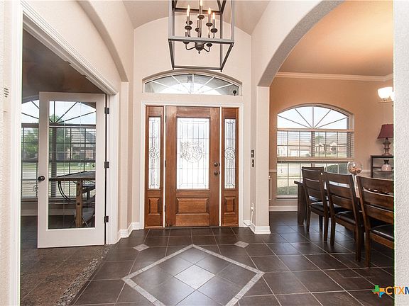 Step inside and discover a great open floor plan designed for both comfortable living and grand entertaining. The main level features two living areas and two dining areas, including a formal dining room perfect for special occasions. A flexible room with double glass doors and a closet can serve as a study, office, or a third living space. The heart of this home is the spacious island kitchen, complete with beautiful granite countertops, a tile backsplash, a breakfast bar, and a large walk-in pantry. The main living room is a showstopper, boasting a beautiful pop-up tiered ceiling with elegant rope lighting—huge custom fan—, plus custom chandelier in entryway and a cozy fireplace, all bathed in plenty of natural light.