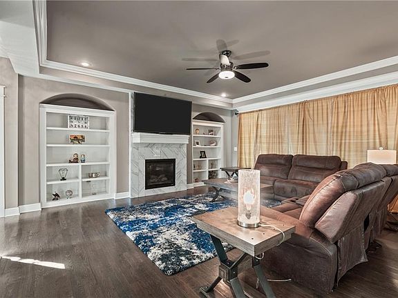 Welcome to this beautifully updated two-story home in the highly sought-after Hills of Forest Creek Estates in Shawnee! Featuring a brand-new roof (2024), this former model home was designed with elevated finishes, thoughtful upgrades, and a warm, inviting flow. The heart of the home is the custom kitchen, showcasing a large island, stunning countertops, and a spacious eat-in nook with doors leading to a covered porch—perfect for morning coffee or evening gatherings. The open-concept main level is filled with natural light from large windows and highlighted by beautiful hardwood floors, custom built-ins, and elegant finishes throughout. Upstairs, the expansive primary suite offers a peaceful retreat with tray ceilings, a cozy sitting area, dual vanities, a large soaking tub, and a generous walk-in closet. With five bedrooms and four-and-a-half baths, there’s plenty of room for everyone to live, work, and relax in comfort. The finished lower level features approximately 600 square feet of additional living space with 9-foot ceilings—ideal for a media room, playroom, or guest suite. The garage features beautifully epoxied floors, adding a clean, polished finish to this well-cared-for home. Enjoy the charm of this vibrant neighborhood, offering walking trails, a community clubhouse, and a sparkling pool. Conveniently located near top-rated schools, this home is also walkable to elementary, middle, and high school, and close to parks, shops, and restaurants. Come experience the beauty, warmth, and light of this Forest Creek Estates treasure—schedule your showing today!