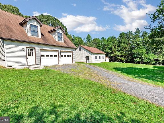 Mechanics Dream: 7 acres,Two Bedroom House, One Bath 2 Car Detached Garage 36 x 30, 2 Car Detached Garage 32 x 28 (765.27 square foot) 2nd floor has one bedroom, bath, kitchen, dining and Living Room with Hardwood floors . (289.56 square foot) 1st floor (Accessory unit) Laundry room and Foyer, 2 sheds