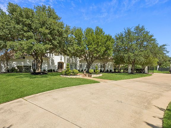 Tucked away in the prestigious gated community of The Landing, this exquisitely maintained estate rests on a private, tree-lined 2-acre lot with sweeping views of a stocked pond—your own serene countryside escape just minutes from Lake Grapevine. From the moment you arrive, the circular driveway and grand wooden entry doors set the tone for timeless elegance. Inside, soaring ceilings, floor-to-ceiling windows, and an abundance of natural light highlight the home’s refined finishes and thoughtful updates. Designed for both everyday living and upscale entertaining, the residence features a gourmet kitchen with custom white cabinetry, a built-in refrigerator, double ovens, and striking marble and quartz 2-inch countertops. Hand-scraped hardwood floors run throughout all bedrooms and main living areas, complemented by a wine cellar, walk-in pantry, and generous storage throughout. The guest suite includes private exterior access—perfect for visitors or multigenerational living—while the elegant primary retreat offers a sitting area with a dual-sided fireplace, a spa-like bath, an oversized walk-in closet with built-ins, and direct access to the backyard. Additional spaces include a game or media room, formal dining, home office, and multiple living areas, all connected by two staircases that enhance both functionality and style. Smart home upgrades such as a radiant barrier, whole-house surge protector, new air ducts, and a high-efficiency sprinkler system add modern convenience and energy efficiency. Outdoors, the expansive backyard—extending to the middle of the tranquil pond—offers endless possibilities to create your dream outdoor oasis, whether you envision a resort-style pool, outdoor kitchen, or peaceful garden retreat. With its rare blend of privacy, elegance, and modern comfort, this Holmes-built masterpiece offers the ultimate in luxury living. Schedule your private tour and experience the magic of The Landing lifestyle.