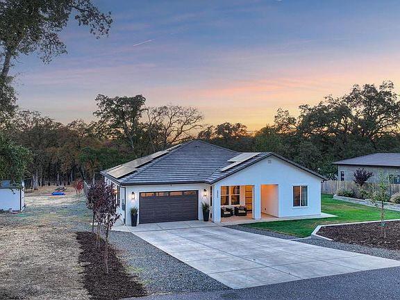 Nestled in coveted Christian Valley of Auburn, this stunning 2018-built modern farmhouse offers a perfect blend of luxury, comfort, and natural beauty. Set on 2.73 acres of prime, level land this 4 bed, 2 bath home features an open-concept floorplan perfect for both everyday living and entertaining. Step inside to discover high-end finishes throughout, including a water softening system, recessed lighting, luxury laminate floors, and a chef-inspired kitchen w/quartz countertops, custom cabinetry, and stainless steel appliances - creating a sophisticated living space. The expansive primary suite is a true retreat, offering direct access to the outdoors and a spa-like bathroom with soaking tub, dual vanities, an oversized frameless shower, and a walk-in closet. This serene sanctuary provides ultimate relaxation and convenience. Step outside to a private oasis with fenced saltwater pool featuring a Baja shelf, and relaxing spa. Whether unwinding after a long day or hosting guests, the lounge area offers the ideal setting for entertainment and leisure. The nearly 3-acre property is equipped with efficiency and sustainability offering leased solar panels and a high-output well system (100-110 gpm) - ideal for gardening, equestrian pursuits, or creating your dream outdoor retreat.