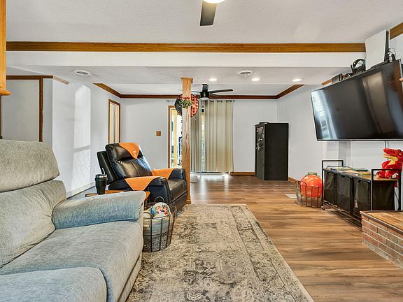 Step inside and be greeted by a bright, inviting layout that flows effortlessly between living spaces — ideal for both everyday living and entertaining. The brick, wood-burning fireplace takes center stage, adding warmth and character to cozy evenings at home.