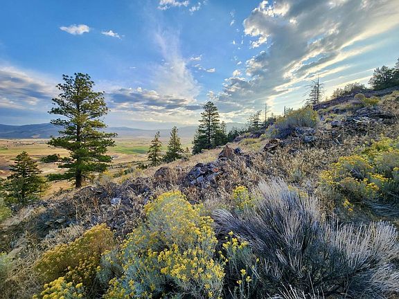 The terrain ranges from open grassland meadows to rugged hillsides dotted with pine, juniper, and native sagebrush. The ridgeline provides a panoramic view of the entire valley below, with the Salish Mountains rising dramatically in the distance. Whether you envision a seasonal getaway, off-grid cabin, or full-time residence, the property provides countless options for building sites with commanding views.