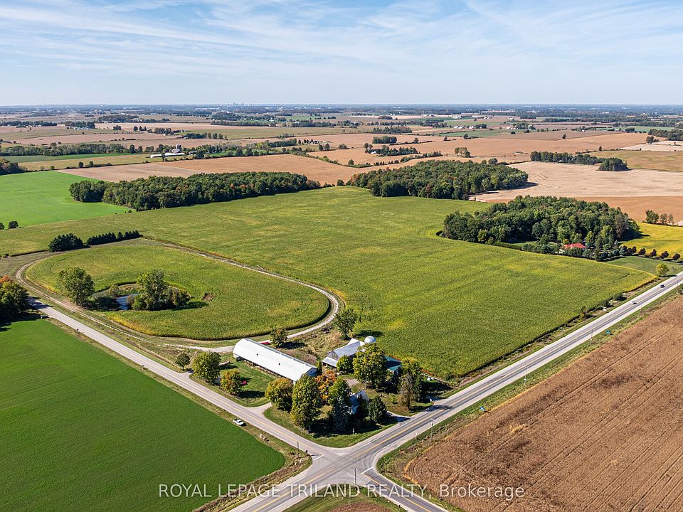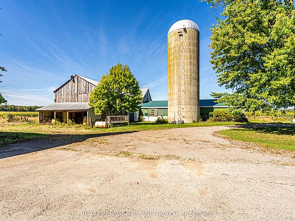 Farm for Sale 5901 Elgin Road, Thames Centre, ON, N0L 1B0 -- Just south of Hwy 401, this 88.5 +/- acre farm offers a rare mix of agricultural opportunity, equestrian facilities, and country living. With approx. 73 workable acres, the land is ideal for cash crops, hay production, or equestrian use. The impressive 30 x 192 horse barn includes 30 stalls, a tack room, a loft/haymow, and living quarters, while a second barn provides equipment storage. A 1/2-mile training track adds to the versatility of this unique property. The large 5-bedroom farmhouse provides plenty of space for family living, ready for your updates and personal touch. Conveniently located minutes from London, Dorchester, and Ingersoll, this property combines functionality, lifestyle, and potential. First time on the market in 60 Years. Don't miss the chance to own this exceptional rural retreat.