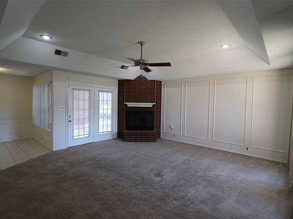This charming 3-bedroom, 2-bath all-brick home is nestled in a peaceful Southwest Arlington neighborhood. It offers easy access to I-20 and US 287, and is just 25 minutes from Fort Worth, Dallas, or DFW Airport. Located in an acclaimed school district, it’s close to daycare facilities, shopping, and major entertainment, sports, and dining spots. The home boasts an open kitchen with an electric range, microwave, dishwasher, and refrigerator, along with an adjacent dining area and a spacious living room featuring a mantled fireplace and floor outlets. The double-doored laundry room, accessible from the garage or kitchen, is fitted with storage cabinets and a large pantry. The garage includes a side door leading to the backyard. Hardwood floors run through the hallway and bedrooms, adding warmth and elegance. The ensuite master bedroom connects to a skylit bathroom with a mirrored double sink vanity, His and Hers walk-in closets, a beautiful bathtub framed by a custom leaded glass window, a separate shower with a tiled bench, and a private lavatory. French doors in the living room provide access to a porch equipped with lighting, outlets, and a ceiling fan—perfect for outdoor dining and entertaining with morning sun and afternoon shade. The large backyard features shade trees, a workshop with power and lighting, and a separate kennel area for pets or storage. Additional highlights include two decked and lighted attic storage spaces with recessed stairways, ceiling fans throughout, and floodlights surrounding the property. The home has a new roof installed in June 2024, which is under warranty and qualifies for a significant insurance discount. Freshly painted and ready to move in!