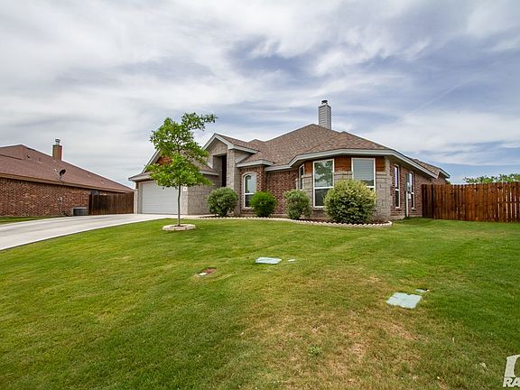 Beautiful customized 4 bedroom home on extra large lot. One owner. Some of the extra highlights include upgraded kitchen stainless appliances including refrigerator that remain, vaulted wood ceiling in living, granite countertops throughout, double French doors in master bedroom that walk out to Pergola, extensive wood tile in in living area, kitchen, dining and hallways, floor to ceiling stone fireplace with stained mantel, oil rubbed bronze fixtures and more. Master bath has double sinks, double closets, separate shower & tub. Epoxy coated garage floor with mirrors in garage that remain. Plumbed for water softener and wired for security. (Security system does not remain). Outside is a covered patio, pergola, storage building, and fully sprinklered yard.