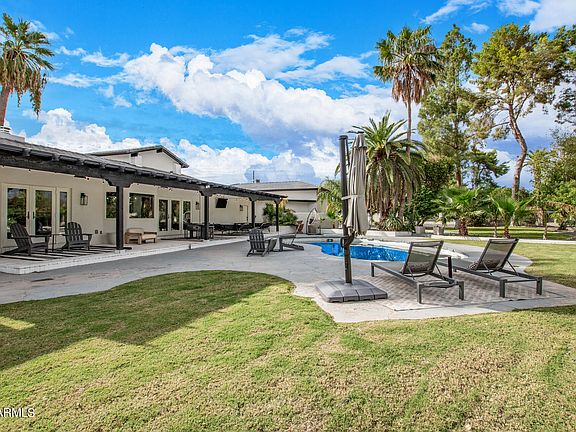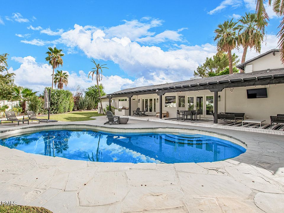 Fresh remodel in Paradise Valley. Enter the solid wood custom oak pivot front door to clean lines, cohesive blends of natural elements and textures that will draw you in. This home evokes the feeling of being at a private 5-star resort. Flexible interior space include 4 bedrooms along a with children video game room, theater room, dedicated exercise room. The gourmet kitchen offers oversized refrigerator and freezer, 48 in gas range, island seating with waterfall slab quartz. Exceptional location to restaurants, shopping, schools. Backyard oasis, tranquil swimming pool, covered patio, huge palms, mature trees, multiple grass areas. Several areas with Camelback Mountain views. New roof, pavers, blown insulation, windows, floors, lighting, fixtures, doors, fridge.furniture available.