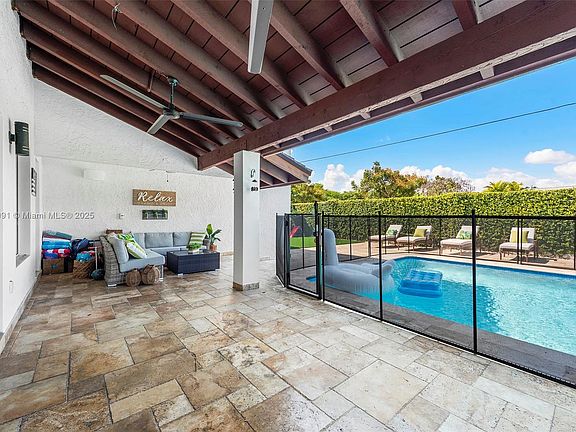 Beautiful, spacious, modern home with a big pool for the family and friends to enjoy. It's located in the walled community of Gables Edge in SOUTH MIAMI, blocks away from University of Miami and A+ school. Open living room with marble floor through out, leading to the terrace and pool deck. A custom design kitchen with modern appliances, wall oven, wine cooler, quartz countertop with the island and access to the patio. Tesla charger, solar roof, pool, impact windows and doors are some extras this property offer.