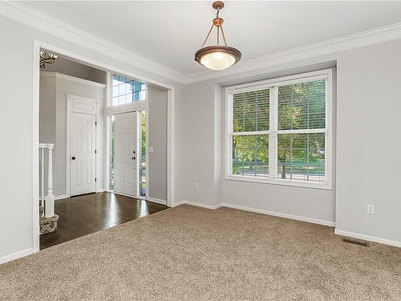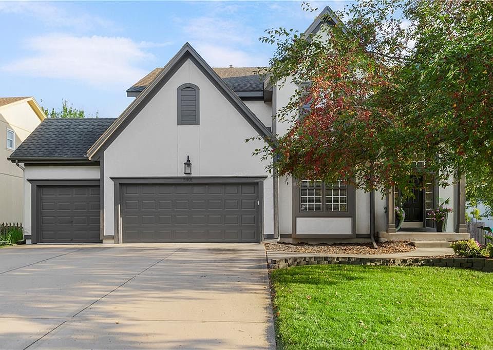 Stunning single-family home in the desirable Green Meadows neighborhood! This 4-bedroom, 3.5-bathroom residence offers 2,537 sq. ft. of living space, featuring an open floor plan with abundant natural light, a spacious kitchen with modern appliances, and a cozy living area with a see-through fireplace. The primary suite boasts a private bath, ample closet space, and a charming balcony overlooking the lower level, while two upstairs bedrooms share a convenient Jack and Jill bathroom. Recent updates include new hardwood floors throughout, plush new carpet, an upgraded stairway carpet for a unique designer touch, and freshly painted exterior for added curb appeal. Enjoy outdoor entertaining on the private patio, landscaped backyard, and nearby walking trails. Conveniently located near shopping, dining, and top-rated Blue Valley Schools. Move-in ready and perfect for families seeking both comfort and style!