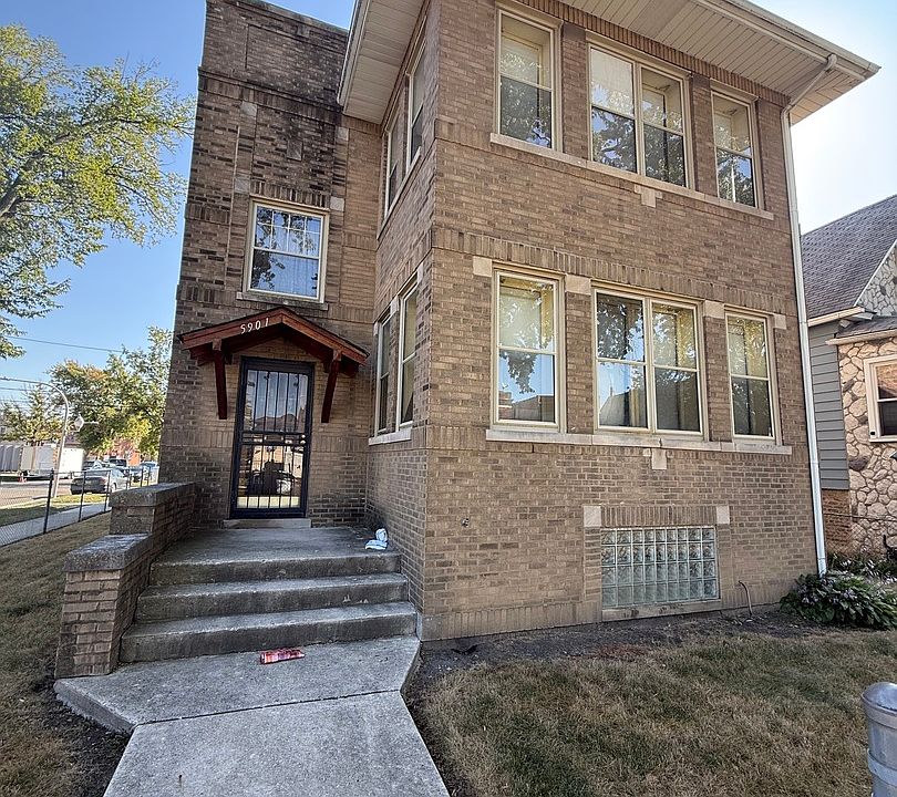 Solid brick two-flat featuring two three-bedroom units. The first-floor unit offers two full baths, while the second floor includes one full bath. One unit is currently vacant, and the other is tenant-occupied on a month-to-month lease. Full basement and detached garage. Property is being sold as-is.
