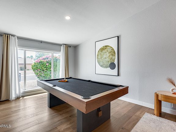 Entertainer's Dream! This home with furniture included features an open floor plan with vaulted ceilings, hardwood floors & carpeted bedrooms, recessed lighting & chef's kitchen with quartz counters & backsplash, waterfall edge island, stainless steel appliances, soft-close cabinetry, built-in corner seating & additional cabinets & wine fridge in the living area. The large backyard features a covered patio, sparkling fenced pool, children's play area & private putting green - a perfect blend of relaxation & fun! Additional upgrades include solar panels, new pool pump & brand-new HVAC system (2025) making this home as efficient as it is stylish. All of this on an oversized lot, located near Scottsdale Quarter, Kierland Commons, dining, shopping, golf & highly rated Paradise Valley schools!