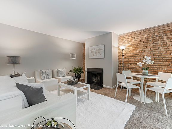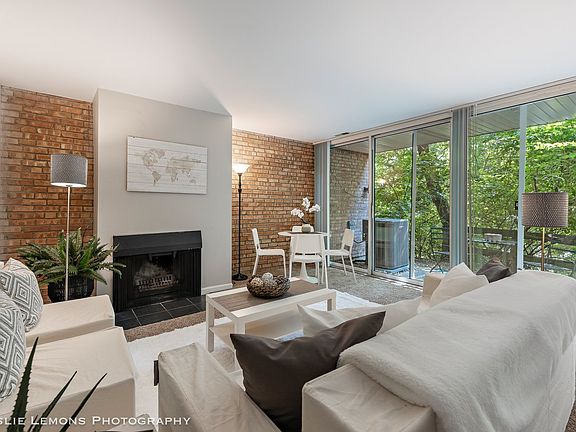 Sit back & relax from your patio on this 1 bedroom, first floor unit in Four Lakes overlooking mature trees & perennial gardens! The kitchen has 42 inch cherry wood colored cabinets, laminate countertops & black appliances. It has a walk-in pantry for great storage & convenience. There is a peninsula that can easily accommodate bar stools & there's even room for a table & chairs with the separate dining area. Floor to ceiling windows in dining & living allow for natural sunlight. Neutral carpet, paint, white trim & doors throughout makes this home move in ready! Large family room with a stunning brick wall and wood burning fireplace creates a warm & inviting ambiance! Stackable washer & dryer in the bedroom makes it easy to do laundry. The patio serves as a serene place of relaxation on a warm summer day, a crisp fall night or even during a winter wonderland! 1 assigned parking spot included in the price and located right in front of the building. Four Lakes offers swimming pools, ski hill, tennis courts, volleyball courts, bar & restaurant, convenient store, and gym with low membership options. Walking and jogging trails, fishing and boating just to name a few! Be as active as you want or sit back and relax and enjoy the nature of Four Lakes. Water, Common Insurance, Pool, Exterior Maintenance, Lawn Care, Scavenger, Snow Removal included in the association fee. Conveniently located close to 355 and I-88, shopping & entertainment. New & newer features include HVAC (2023), water heater (2020) garbage disposal & bathroom vent (2024).