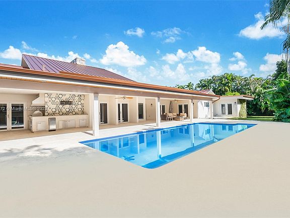HUGE PRICE REDUCTION !Pinecrest Grove- Gated Community of only 9 homes, all on 1 + acre lots- Award Winning Hollub Design - Huge 43,560 sf wide lot- many fruit trees,6 bedrooms 4 1/2 baths, 6734 sf under AC, Total 8073 sf . Impact windows + doors, metal roof, back up generator, 2 garages ( 2 car+ 3 car ) Total 5 car garage. 2 master suites,fitness room or home theatre, Indoor Laundry, Huge Formal Dining room,Impressive High Wood beam Living room with tall coral rock stone fireplace. Covered outdoor terraces with outdoor kitchen, lots of covered outdoor covered seating around the pool, Lush landscaping, circular driveway, very private back yard. This is a unique home in a very desireable pineccrest gated communit. House is Immaculate and ready to move in.