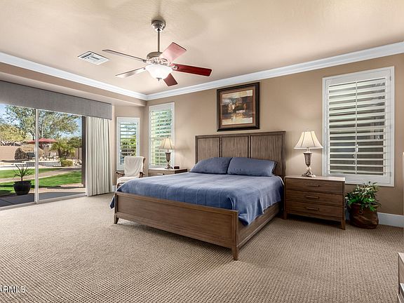 The main-floor primary suite is a true retreat, featuring direct access to the backyard for evening swims or stargazing by the firepit. Upstairs, three additional bedrooms, two full baths, and a spacious game room with balcony create the perfect balance of private and shared spaces. Whether it's movie nights, billiards with friends, or quiet study time, this floor has it all. Step outside to your resort-styl backyard, where the pool, built-in BBQ, and firepit were designed for entertaining and unwinding alike. Surrounded by mountain vistas and lush landscaping, it's easy to imagine both weekend celebrations and peaceful evenings under Arizona skies.