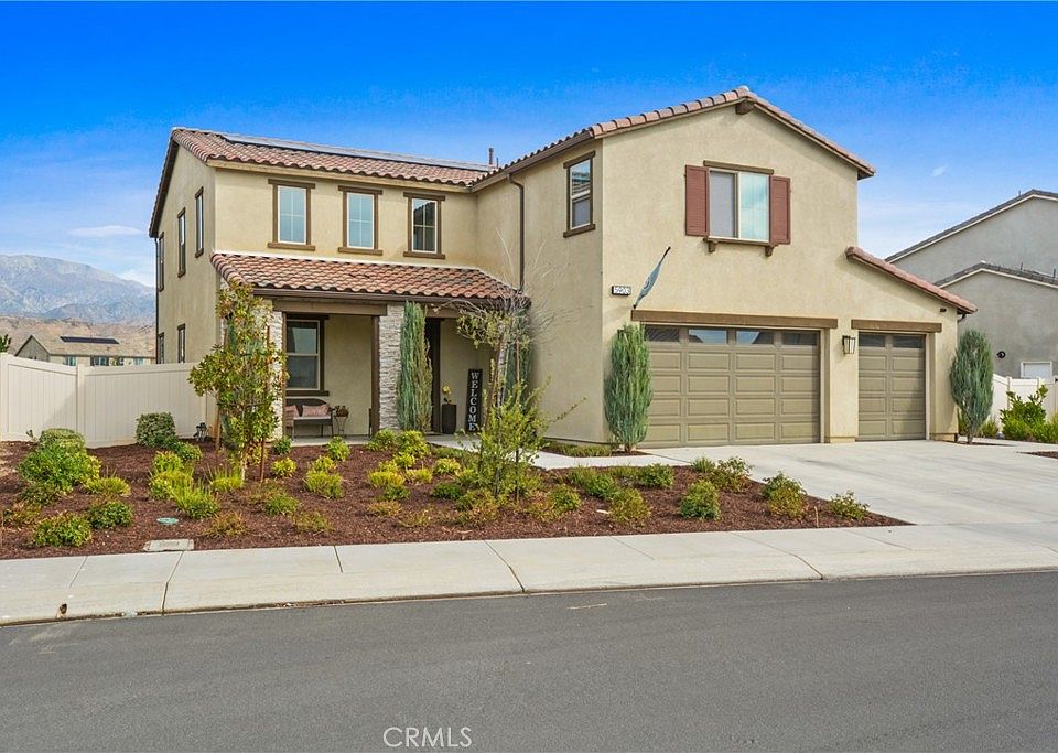 This beautiful single-family home offers the perfect blend of comfort, style, and convenience. This is the largest floor plan home called Horizon at Atwell Community. Featuring spacious rooms, modern amenities and a welcoming atmosphere. Flooring with luxury vinyl throughout main floors, hallways & stairways with upgraded handrails and light fixtures. Living space-open-concept living and dining areas with plenty of natural light, and recessed lights, then to Formal Dining area, special folding sliding doors when you party you can entertain open it with extended to outside covered patio. Remote control shades at sliding doors. Next to it modern Kitchen, with large center island with quartz finished countertop, equipped with stainless steel appliances. Then the White Kitchen Cabinets with light fixtures inside the upper portion. Walk in Pantry plenty of room. Then next to it bathroom and one bedroom for guest. Walk upstairs where you will find the spacious primary bedroom, separate bathrooms, walk in closet for all your collection. Then to Loft Area/Family Room, another place for TV Theater or just listening to your favorite music. Landscaped backyard with a patio, perfect for entertaining or relaxing with low maintenance artificial turf, with paver stones on the sides with wrought iron fence directly behind the house with unobstructed views of the mountain, community lake, walking trials. Another covered patio on the side. You are few steps to the community pool with spa, BBQ area and parks. Hiking trails and biking trails. There's Solar Panels on the house which is package in with the purchase of this house. Situated in a quiet, family friendly neighborhood, this home is conveniently close to parks, shopping centers and medical centers. Enjoy the sense of community while being just minutes away from all the amenities you need. Seller upgrades approximately over $100K on this house so its move in ready!