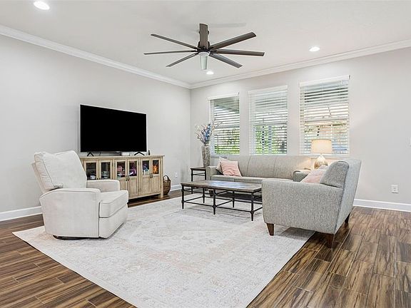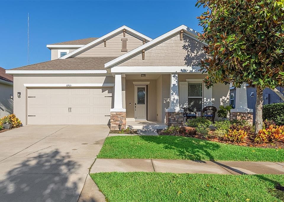 Welcome to this extraordinary home located in the highly desirable community of Fishhawk Ranch West. Boasting just under 2400 square feet, this craftsman style 4-bedroom, 3-bathroom home also features an upstairs bonus room, 2 car garage and an oversized screened and covered lanai with fenced yard. Upgrades include Quartz countertops, oil rubbed bronze faucets, beautiful wood-look tile flooring, crown molding, fresh paint and designer ceiling fans. The gourmet kitchen has a large island with breakfast bar seating, stainless steel appliances, and elegant quartz countertops. Master Suite features a massive walk-in closet and updated walk-in shower. Upstairs you will find an expansive bonus room with its own full bathroom, luxury laminate flooring, and pre-wired surround sound for the home theatre enthusiast. Close proximity to A-rated schools, Community Pool, Lake House, Gym, and all the amenities you could desire. Schedule a showing today!