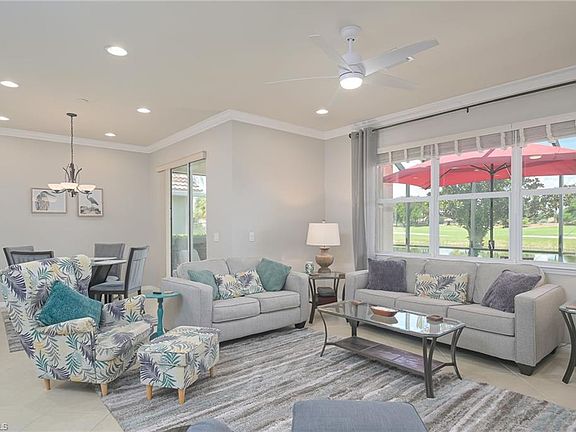 GOLF & WATER VIEW in Del Webb Naples! This COPPER RIDGE floor plan is located in the 55+ Del Webb Naples community, offering a beautiful view of the 5th Fairway of Panther Run Golf Course and water from your EXTENDED SCREENED LANAI - ideal for relaxing or entertaining guests. Inside, the home offers a bright and welcoming layout with an UPGRADED KITCHEN featuring a BOSCH dishwasher, Samsung refrigerator, elegant WHITE CABINETRY, and custom pantry shelving. The spacious PRIMARY SUITE feels like a private retreat, complete with a CUSTOM WALK-IN CLOSET and a luxurious en-suite bath with dual sinks, a walk-in shower, and a soaking tub. A guest bedroom and versatile den provide flexibility for visitors, a home office, or creative space. Additional upgrades include a BRAND NEW HOT WATER HEATER, NEWER WASHER & DRYER, WHOLE-HOUSE WATER SOFTENER, and PORTABLE GENERATOR HOOK-UP for added convenience. Sellers will provide a GOLD HOME WARRANTY at closing - adding peace of mind for the buyer. The 4' EXTENDED GARAGE offers extra room for storage or a golf cart, featuring EPOXY FLOORING, shelving, and an insulated door. Also, the PULL DOWN ATTIC STAIRS in the garage, give lots of storage above. For worry-free living, the home is equipped with ACCORDION SHUTTERS on all windows and ROLL DOWN HURRICANE SCREENS protection on the lanai. This home comes with the SOCIAL MEMBERSHIP, but take note GOLF LOVERS, Panther Run Golf Club offers optional MEMBERSHIPS with premium golf experiences just steps from your backyard. In Del Webb Naples, you’ll enjoy WORLD-CLASS AMENITIES that rival luxury resorts: dine at the Rusty Putter Restaurant, soak in the RESORT-STYLE or LAP POOLS, break a sweat in the state-of-the-art FITNESS CENTER, and play your way through PICKLEBALL, TENNIS, bocce, billiards - even a top-tier GOLF SIMULATOR! Need groceries, church, or a bite to eat? Just hop in your golf cart and cruise into town - Publix and the heart of Ave Maria are just minutes away. This isn’t just a home - it’s a LIFESTYLE UPGRADE in one of Southwest Florida’s most vibrant 55+ communities. Don’t miss your chance to live where fun, fitness, and friendships flourish year-round!