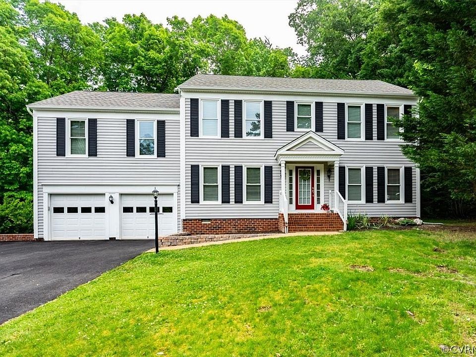 This charming 5 BR 3.1 BA Colonial is located on a private lot in a family friendly cul de sac. close to the lake. It has been lovingly cared for with it's newer roof, siding, and wide new driveway for additional parking. The heart of the home is in this gourmet kitchen with the stainless steel appliances and gas cooking double oven range accented by the beautiful new granite counters. This home is a must see, as it will surprise you with 2 stairwells and expansive upstairs. The back staircase leads to the additional primary bedroom suite. The laundry room is conveniently located upstairs with lots of natural light. The large Primary Bedroom Suite has a double door entrance and a vaulted ceiling. The primary bathroom is bathed in natural light has a jetted spa tub and walk in shower. The large closet also has a window for natural light. And there are 3 additional bedrooms that are freshly painted and carpeted. The private backyard has direct access to one of the many walking trails. Harbour Pointe is located on Swift Creek Reservoir in the Brandermill Community, where you can enjoy lake access, and spend summers at any of the 3 pools. It has easy access to 288, restaurants, shopping and grocery stores and Chesterfield County Schools.