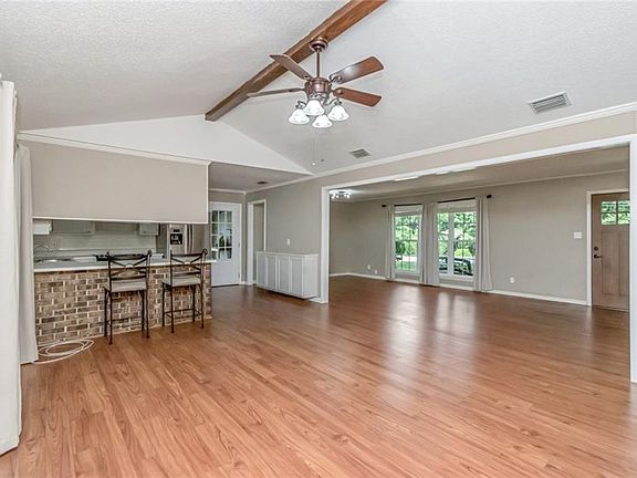Move right into this lovely brick home with a huge yard! Den looks onto a large covered porch, oversized primary bedroom with dressing room, and extra single garage for a great workspace. Sprinkler system, well and well components not warranted. Buyer responsible for verifying all measurements and relevant details.