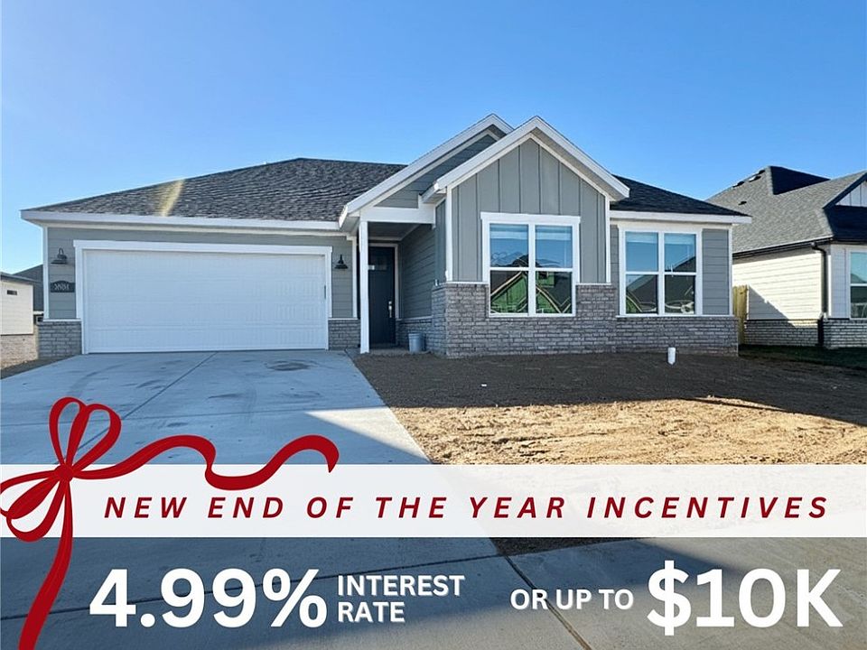 Discover your dream home in the sought-after Osage Hills neighborhood. Benton plan with garage on the left and North facing! 10 ft ceilings in the living/kitchen area, linear electric fireplace in the living, 1 level, LVP flooring throughout the main living areas and primary bedroom, quartz countertops and more. Chef's kitchen boasting frigidaire stainless steel appliances, gas range, pantry, quartz countertops, bar pull handles, large island and gorgeous backsplash. Luxurious primary bedroom features abundant natural light, while the spa-like primary bathroom offers a walk-in shower, double sinks, and spacious walk-in closets. Additional features include three large secondary bedrooms and a separate laundry room. Nestled on a generous lot with covered patio that overlooks the serene sodded, fully fenced backyard. Model home located at 6008 SW Coywolf St- Lot 122.