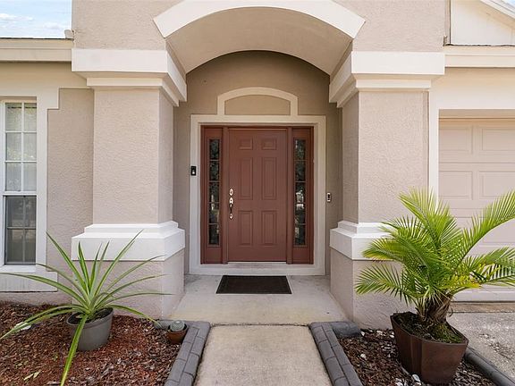 Discover this beautifully updated 4-bedroom, 2-bath home with a 2-car garage and a sparkling screened-in heated pool, nestled in the sought-after Lexington Oaks Village! Step inside to an inviting open layout with a spacious living and dining area, luxury vinyl plank flooring, and a bright kitchen featuring quartz countertops, marble backsplash, stainless steel appliances, and recessed lighting. The split-bedroom design offers a serene primary suite with a large walk-in closet, dual vanities, soaking tub, walk-in shower, and private water closet. Enjoy peaceful conservation views from your poolside patio, perfect for relaxing or entertaining. Community perks include a fitness center, resort-style pool, playground, splash pad, sports courts, golf course, and clubhouse—all just minutes from The Grove, Wiregrass Mall, top-rated schools, Tampa premium outlets, Costco, hospitals, and major highways. This home truly blends comfort, style, and convenience—schedule your showing today!