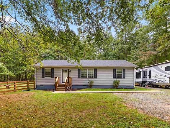 This beautifully renovated home blends modern finishes with the tranquility of country living on a sprawling 3.26-acre wooded lot. Nearly level and partially fenced, providing space for outdoor activities, pets, or gardening. The interior features three thoughtfully designed bedrooms and two bathrooms for comfort and privacy. Every detail has been carefully chosen, from stylish hardware, white kitchen cabinets with soft-close drawers and granite counters, to high-end stainless appliances and luxury vinyl plank flooring throughout. The living room is anchored by a cozy gas fireplace, and the primary bathroom offers a custom, tiled walk-in shower for a spa-like retreat. All hardware and light fixtures have been updated, lending a fresh, contemporary feel to the home. Outdoor living is equally impressive with a back deck, large patio, mature trees for year-round privacy, and a shed that conveys for extra storage. New roof, encapsulated crawlspace, and a 50amp plug for your RV needs. This move-in-ready property represents the perfect opportunity for those seeking both generous acreage and refined modern comforts. Just minutes from I64 for an easy commute. No HOA, and Firefly high speed internet for all of your streaming needs!