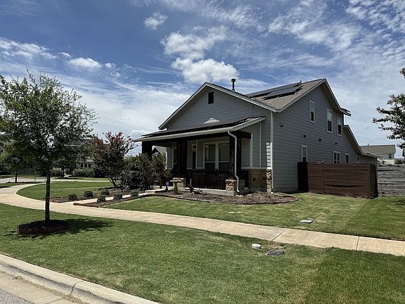 This stunning corner loft home in the highly sought-after Goodnight Ranch neighborhood offers exceptional value and convenience! With 3 spacious bedrooms, a loft, and 3 bathrooms, it features top-of-the-line amenities, including a 30-inch gas stovetop with EZ-2-lift hinged cast-iron grates, a Whirlpool 30-inch built-in electric convection double wall oven, and a cozy gas fireplace with stone surround. The home also includes a security camera system, sound wiring, granite countertops, soft-touch kitchen cabinets, and a vegetable garden with a self-watering system. Additional perks include a compost bin, high-speed AT&T internet, and an 8.175 KW solar panel system to help save on your electric bill. The location is unbeatable just 0.5 miles from Onion Creek Metropolitan Park, 75 yards from The Rambler retail shops, and 0.6 miles from highly-rated Blazier Primary and Intermediate schools. HEB is just 2.9 miles away, and the SouthPark Meadows shopping center is nearby. Plus, you're only 12 miles from Austin Bergstrom International Airport! This move-in-ready home will be available starting January 1, 2025. Credit and background checks will be required. This one won't last long contact us today! Renter is responsible for water, gas, electricity, and internet. No smoking allowed.