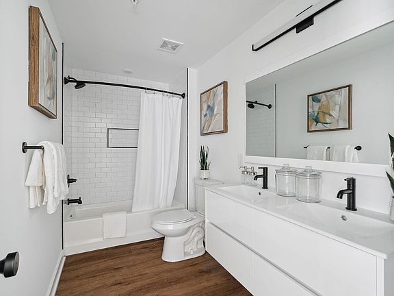 Every unit boasts high-quality LVP flooring, upgraded stainless steel appliances including an exhaust hood and concealed microwave, Quartz countertops, matte black finishes, in-unit laundry facilities, and a custom closet organization system for added convenience and style.