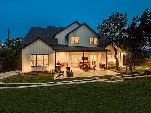 Tucked behind a private gate and nestled beneath mature oaks, this stunning home + casita sits on an expansive .67-acre lot just steps from Lake Travis. With a combined 3,742 sqft, 5 BD and 4.5 BA, the property offers a spacious and flexible layout that works beautifully for everyday living, guests, or even rental potential. Designed with modern taste and thoughtful finishings, it feels like a serene retreat while still being close to everything Austin has to offer. The main house features an open concept space that blends the kitchen, living and dining. Just beyond, tucked under the shade of mature trees, there’s a stylish casita complete with a bedroom, full bath and a kitchenette. It’s the perfect setup for guests or a potential short-term rental. From the moment you walk in, you’re welcomed by warm wood floors, high ceilings, gorgeous display windows and recessed lighting that carries an inviting energy throughout. The kitchen is stunning with its oversized quartz waterfall island, tons of cabinet space and under-cabinet lighting for a touch of luxury. The impressive primary suite is a dream, with vaulted ceilings, an exposed beam, perfectly placed windows, an equally impressive ensuite and a massive walk-in closet—complete with its own washer and dryer. A guest bath and private office round out the main level. Upstairs, you’ll find 3 BD, 2 BA, a generous living/game room and another laundry room—Yes, this home has 2, laundry rooms! Step outside into a peaceful backyard that feels like your own little escape. Walking distance to Lake Travis, you’re never far from outdoor adventure. Chickens are welcome and you can launch your boat, explore nearby trails, or head into downtown, just 16 miles away.
