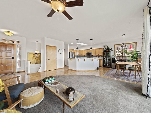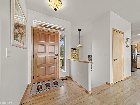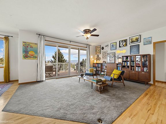 Discover this beautifully maintained, move-in ready home with a gated entry and stunning views, located in the highly sought-after Woodland Ridge neighborhood! This 4-bedroom, 3-bathroom gem spans 2,880 square feet of thoughtfully designed living space situated adjacent to state owned acreage. The open-concept floorplan showcases stunning valley views with expansive glass 4-panel sliding door leading to spacious outdoor deck. The main floor primary bedroom features a large walk in closet and en suite with custom shower enclosure. Enjoy modern conveniences like newer stainless steel appliances, bronze hardware and lighting, motorized window coverings, main floor laundry & beautiful solid wood flooring. Downstairs, you'll find a fantastic daylight basement with large living room, great storage, sleek bathroom, two additional bedrooms and screened in patio space overlooking the manicured yard and territorial views. Major updates include a new roof in 2021 and a gas furnace/AC system replaced in 2018.