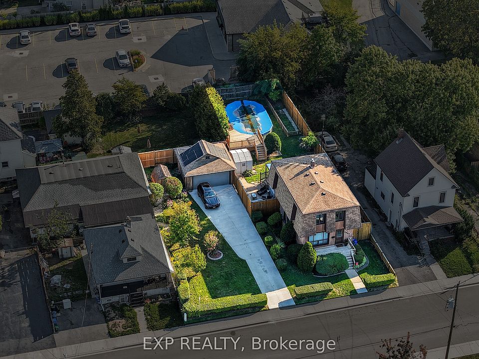 A rare opportunity in Niagara Falls! This property is a Double Lot!!, R5A for modern multi-unit apartment living. A Charming Century Home with Backyard Oasis. Spacious 3-bed, 2-bath century home blending timeless character with modern updates. Featuring a beautifully updated kitchen with quartz countertops and quartz island, SS Gas range with grill, and SS French door fridge with filtered water spout. Bright Living and Dining rooms, plus a sunroom overlooking a private 8-ft fenced yard. Original wood banister and antique stained-glass window add classic charm, while a large picture window and side bay window bring in plenty of natural light.The backyard retreat is an entertainers dream, solar-heated above-ground pool with solar blanket and winter blanket, 6-person hot tub with lounger, water spouts, lighting, and ionizer, surrounded by lush perennial gardens and a large stone patio. Double-car garage with remote opener and a long private driveway providing ample parking, along with generous storage throughout the home. Basement offers in-law suite potential with roughed-in plumbing for a full bathroom. Added peace of mind with an 8 camera hard-wired security system. Convenient location, Valley Way P.S. and Stamford Collegiate within walking distance, plus school bus access. Steps to Casino, restaurants, and entertainment.