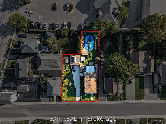 A rare opportunity in Niagara Falls! This property is surrounded by versatile zoning R2 for welcoming family homes, R5A for modern multi-unit apartment living, and GC for dynamic commercial ventures. With options ranging from residential charm to higher-density development and thriving business uses, the area offers exceptional potential for buyers, investors, and builders alike. A Double Lot!! Charming Century Home with Backyard Oasis. Spacious 3-bed, 2-bath century home blending timeless character with modern updates. Featuring a beautifully updated kitchen with quartz countertops and quartz island, SS Gas range with grill, and SS French door fridge with filtered water spout. Bright Living and Dining rooms, plus a sunroom overlooking a private 8-ft fenced yard. Original wood banister and antique stained-glass window add classic charm, while a large picture window and side bay window bring in plenty of natural light.The backyard retreat is an entertainers dream, solar-heated above-ground pool with solar blanket and winter blanket, 6-person hot tub with lounger, water spouts, lighting, and ionizer, surrounded by lush perennial gardens and a large stone patio. Double-car garage with remote opener and a long private driveway providing ample parking, along with generous storage throughout the home. Basement offers in-law suite potential with roughed-in plumbing for a full bathroom. Added peace of mind with an 8 camera hard-wired security system. Convenient location, Valley Way P.S. and Stamford Collegiate within walking distance, plus school bus access. Steps to Casino, restaurants, and entertainment. Bonus: This property being a double lot has the potential of being severed into 2 lots (subject to municipal approval).