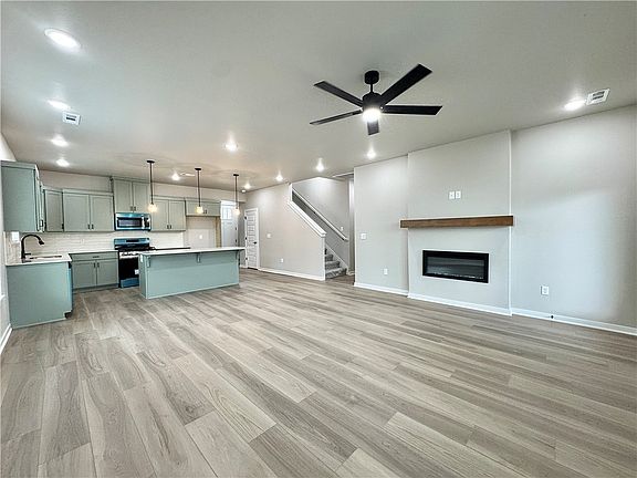 Fence, blinds and gutters included! Discover your dream home in the sought-after Osage Hills neighborhood. Delta plan with garage on the left and South facing! 9 ft ceilings, linear electric fireplace in the living room, LVP flooring throughout the main living areas and primary bedroom, quartz countertops and more. Chef's kitchen boasting frigidaire stainless steel appliances, gas range, pantry, quartz countertops, bar pull handles, large island and gorgeous backsplash. Luxurious primary bedroom features abundant natural light, while the spa-like primary bathroom offers a walk-in shower, tub, double sinks, and spacious walk-in closets. Additional features include a study on the main level, two large secondary bedrooms upstairs and a separate laundry room. Nestled on a generous lot with covered patio that overlooks the serene sodded, fully fenced backyard. Sturdy concrete siding & brick! Model home located at 6008 SW Coywolf St- Lot 122.