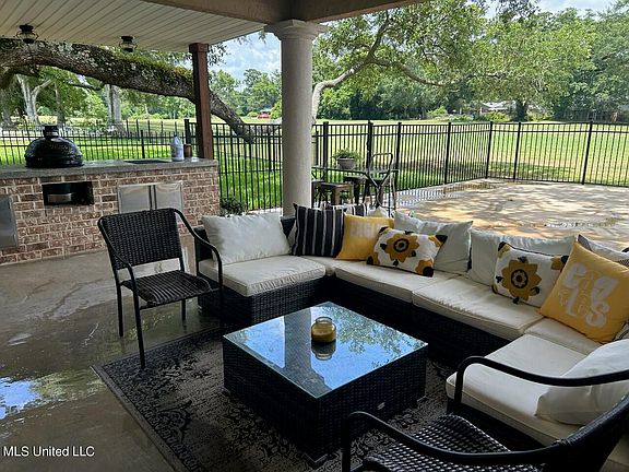 Golf Course frontage on the 6th fairway with an inground pool and covered outdoor kitchen and grill area. Is located across the street from Hole#1 and is a short walk or golf cart ride to the Gulf Hills clubhouse. Has 5 bedrooms and 3 full baths with a fireplace in the dining room. Also has an oversized two car garage. Metal roof with real stucco over brick siding. Greenhouse off one of the bedrooms.