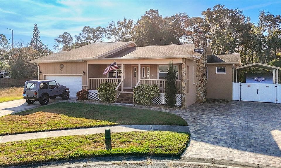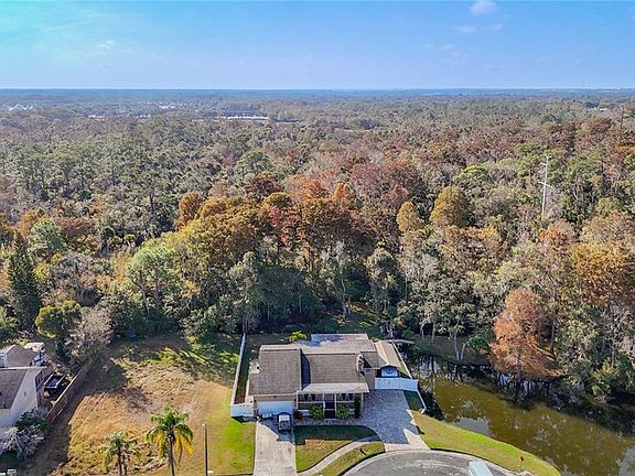 A Private, Park-Like Oasis with Unmatched Amenities Awaits! Discover an unparalleled retreat where natural beauty meets modern convenience. Looking out at mature, leafy trees, this remarkable property features a serene pond and small stream. Sit by your firepit or cross over your charming bridge inviting serene moments of quiet reflection. Inside, the kitchen inspires the home chef with granite counter tops and modern appliances that include a double oven and island mounted electric cook top with exhaust. The inviting living space boasts a warm and cozy stone veneer fireplace, ideal for relaxing on crisp evenings. This property is an outdoor enthusiast's dream, offering extensive functionality with a workshop, a spacious RV carport for your travel adventures, and a generous two-car garage. This rare opportunity offers a lifestyle of comfort, privacy, and endless possibilities. The city of Holiday is known for its proximity to the Tampa Bay area, but with a more quiet budget friendly cost of living and a focus on parks and nature, including the Anclote River Park and Key Vista Nature Park. Don't miss your chance to own this one-of-a-kind gem—schedule your private showing today!