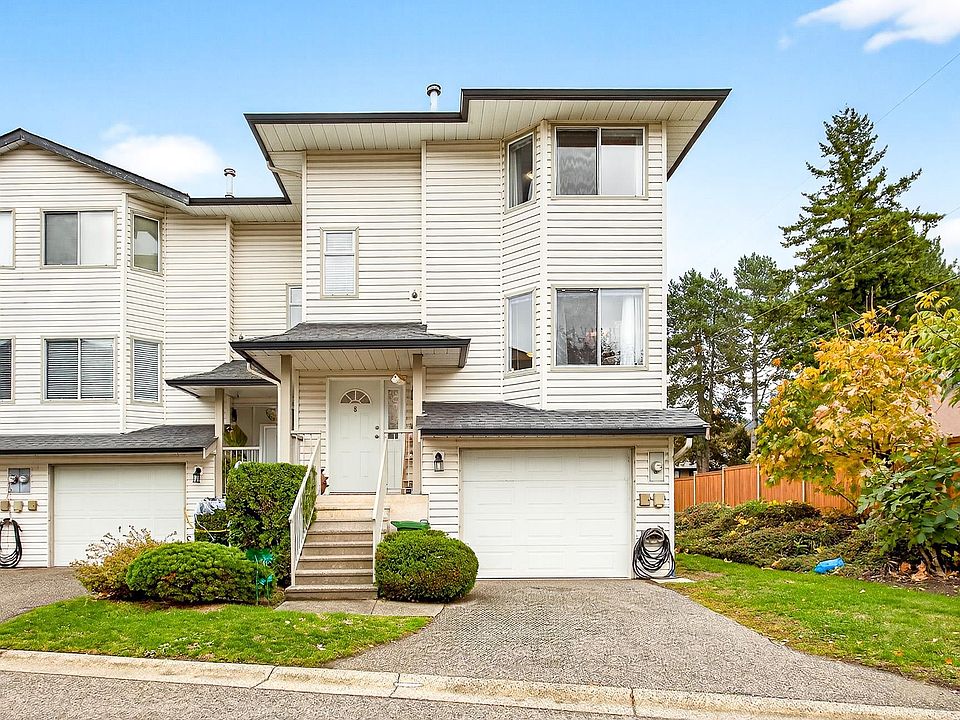 **Parkview Place** Spacious, Bright and updated END UNIT! Extensively renovated in 2021 including all white kitchen with S/S appliances, laminate flooring, baths, sinks, window blinds, pot lights & cozy gas fireplace. New (2024) hot water tank, two stage furnace + HEAT PUMP. Main level features living room with gas fireplace, dining room, updated kitchen + an eating area with access to the balcony. Upstairs has 3 spacious bedrooms including a primary suite with walk-in-closet + 2pc ensuite. Basement rec room + access to patio. Nice open yard, GARAGE and PET FRIENDLY! Close to bus, all levels of schools, shopping, Garrison Crossing, Vedder Crossing, parks and recreation including CULTUS LAKE!