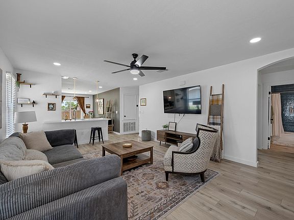 ***New Solar Panels installed in 2024*** Step into this cheerful single-story home where natural light pours through every room, creating a warm and welcoming atmosphere from the moment you enter. With 4 bedrooms and 2 bathrooms, the open-concept design makes everyday living and entertaining feel effortless. The bold blue tile accents in the kitchen and baths add a touch of personality and charm, setting this home apart. The spacious primary suite is a true retreat with plenty of room to unwind and generous closet space for easy organization. Outside, privacy awaits with no back neighbors, giving you the freedom to relax on your brand-new 20’x10’ concrete paver patio, perfect for sunny afternoons or evenings under the stars. A neighborhood park less than a quarter mile away invites morning walks, playtime, or peaceful escapes close to home. Thoughtful updates such as a remote-controlled garage door opener and a solar panel system for energy efficiency add comfort and peace of mind. Move-in ready and filled with joy, this home offers not just a place to live, but a lifestyle to love.