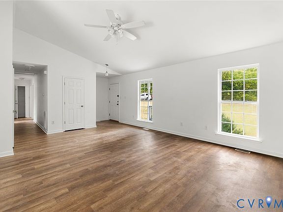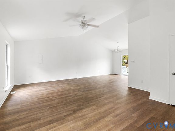 Updated and Charming! Welcome to your new home in Henrico county!  As you approach the house, you will notice a newly painted oversized front porch.  As you enter the home you will be amazed by the sun filled living room with a soaring cathedral celling.  As you walk towards the dining area, you will notice new luxury vinyl plank throughout the home.  The dining area opens up to the kitchen with brand new appliances and great views of the private back yard. There is also a separate laundry room with new tiled flooring. The primary bedroom is set at the opposite end of the home to allow for privacy & features and walk in closet and full bath ensuite.   Both bedrooms feature new flooring and double door closets.  The second bath features an updated vanity and bath.  Walking out of the dining area through the sliding glass door you will step onto a newly installed and painted deck to enjoy sunsets and relaxation. The backyard offers plenty of space for entertaining and an area for children and pets to play. Located close to shopping and dining! New roof installed in 2025! Make your appointment now to see this true gem!