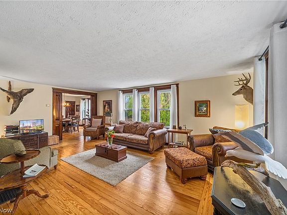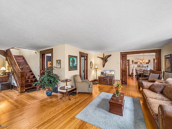 This 1841 colonial is a part of Vermilion history. The property has been impeccably maintained and honored. The signature front porch welcomes guests and is a lovely place to unwind with family and friends. Honey colored thin plank hardwood floors flow throughout the main level. The refinished intricate woodwork throughout is a sign of the time in which this home was built. Tall baseboards, windowsills, and doorways are just one high quality detail to note. The staircase bannister is an art piece in itself with intricate carvings. The formal dining room is currently home to an 8 person dining table & features large windows plus its own cozy fireplace with electric insert. The kitchen is ideally located next to the dining room and has ample cabinetry. Upstairs, the 5 bedrooms are thoughtfully situated & cozy. Additional features include a detached 2 car garage, deck space with hot tub, and SPRAWLING backyard with beautiful mature trees. Other updates include newer carpeting, refinished woodwork, newer vinyl windows, and a newer roof. Schedule your private showing today.