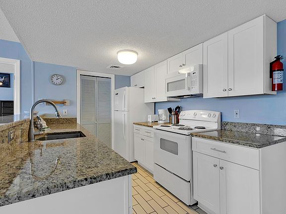 If you are looking for a turn key condo in a gated oceanfront community...this may be it! Myrtle Beach Resort has an outstanding list of amenities and an ultra convenient location to shopping, dining and recreation. This 2 bedroom 2 full bath condo has been lovingly updated by current owners. The kitchen has newer appliances, granite counters and recently upgraded kitchen cabinets. The large breakfast bar comfortably seats 3+ and flows nicely into the spacious living area. The split bedroom plan offers privacy for all occupants. The Primary suite includes a queen bed with newer mattress and has it own full bath and sliding door to the balcony with a pond view. The secondary bedroom includes two twin beds with newer mattresses with easy access to the guest bath. The guest bath and primary bath have upgraded vanities and the entire unit was painted in Coastal hues creating a calm and peaceful environment. Myrtle Beach resort allows short term and long term rentals and is also home to full time residents. There are indoor and outdoor pools, tennis/pickleball courts, playgrounds, beachfront cafe, and beach access all just minutes from your door. Condo comes furnished, minus a few personal items and the HOA includes all of your utilities except electric. HOA information and measurements to be verified by buyer and/or agent.