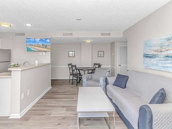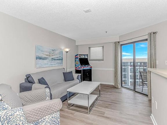 Welcome to the Towers at Myrtle Beach Resort a private resort located inside a 33-acre gated beachfront paradise. This 2 bedroom, 2 bath oceanview condo has been renovated with new LVP flooring throughout, new paint, new furniture with an open concept perfect for family and friends. A split floor plan allows for sleeping privacy each with its own full bath for added convenience. Kitchen is fully equipped with stainless steel appliances and stocked for all of the comforts of home. Keep your kids entertained while they play the arcade game in the living room. Expansive balcony offers views of the ocean and sites of the beautiful sunrise with both the living room and primary bedroom having their own balcony access. Myrtle Beach Resort has a massive amount of amenities including 6 Pools, lazy river, kiddie pools, 5 Hot Tubs, Sauna, Steam Room, Volleyball, Tennis, Pickleball, Basketball, Bocce ball, 3 Gyms, Putting Green, Beach Bar & Restaurant, laundry facility, playground, picnic area and wonderful direct access to private beaches. Don't miss out on your chance to own a slice of heaven in this highly-desirable resort and all it has to offer!