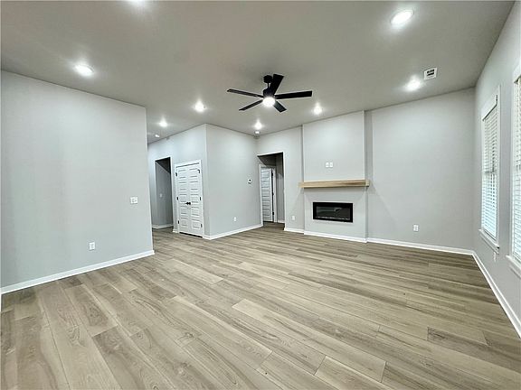 Fence, blinds and gutters included! Discover your dream home in the sought-after Osage Hills neighborhood. Arkansas plan with garage on the right and North facing! 10 ft ceilings in the living/kitchen area, linear electric fireplace, 1 level, LVP flooring throughout the main living areas and primary bedroom, quartz countertops and more. Chef's kitchen boasting frigidaire stainless steel appliances, gas range, pantry, quartz countertops, bar pull handles, large island and gorgeous backsplash. Luxurious primary bedroom features abundant natural light, while the spa-like primary bathroom offers a walk-in shower, double sinks, and spacious walk-in closets. Additional features include two large secondary bedrooms and a separate laundry room. Nestled on a generous lot with covered patio that overlooks the serene sodded, fully fenced backyard. Sturdy concrete siding & brick! Model home located at 6008 SW Coywolf St- Lot 122.