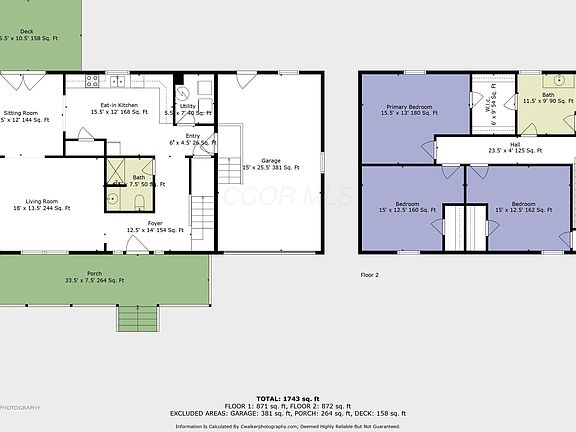 Nestled on 5 picturesque acres, this 3-bedroom, 2-bath home offers thoughtful design and serene outdoor living. The main level features hardwood floors, a full bath, and convenient laundry. Upstairs, the owner's suite includes a walk-in closet connecting to the full bath, with two additional bedrooms nearby. A covered front porch spans the width of the house, while the rear deck overlooks a private, expansive backyard surrounded by mature trees. The property includes a 1.5-car attached garage and an oversized 2-car detached garage with a covered lean-to, perfect for storage, a workshop, or hobbies. A peaceful retreat with endless possibilities.