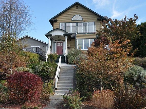 Move-in ready home has living room with gas fireplace and formal dining room with gorgeous oak hardwood floors. Large entertainment deck off kitchen. Master bedroom upstairs has full bathroom with jetted tub as well as sound and mountain views from the deck. Large 3/4 bathroom on main floor has dual shower heads. Basement is fully finished with a bedroom, utility room, family room and a full bathroom. Detached 1-car garage plus 2 uncovered off-alley parking spaces.