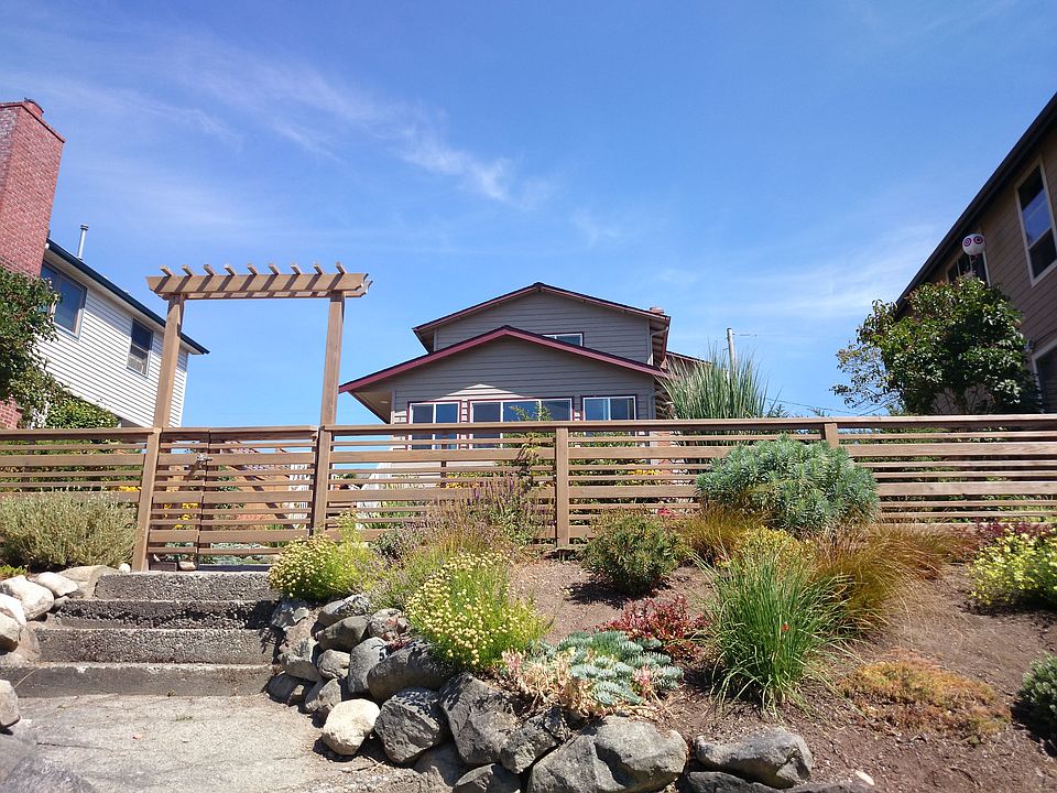 Fantastic location in the Seaview neighborhood of West Seattle! Beautiful 3 bdrm home sits up from the street for added privacy and view. Enjoy the large light filled front room with built in book shelves and quartz counters. Living rm has cozy fireplace.Main floor bedroom has a built in Murphy Bed. Mstr bdrm with view and large mstr bath with jetted tub. 2nd upstairs bdrm has its own full bath. Bright kitchen with eating space. Enjoy the wonderfully landscaped yard w/ large patio area. In between the Alaska Junction & the Morgan Junction.