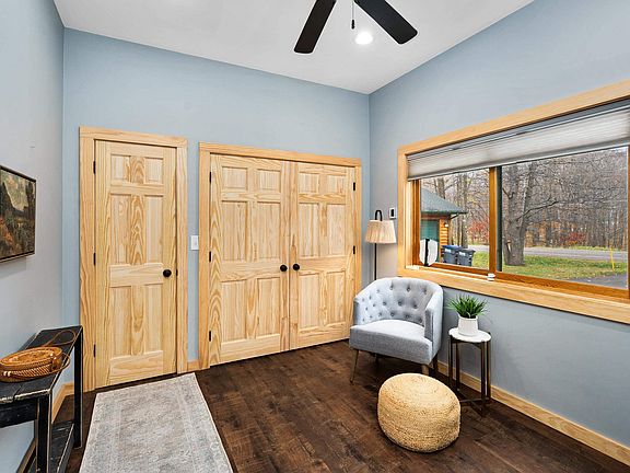 Welcome to this stunning 1950 split log-sided home, perfectly situated on a spectacular 2.28-acre corner lot near Pike Lake! Walk into what is like owning a BRAND NEW HOME! Every room has an update or a remodel throughout! With 4+ bedrooms, 3 baths, 3 fireplaces, 2 Primary Bedrooms (one on the main level!) and 2 decks... this home has it all! Step inside to a brand new, high-end kitchen featuring quartz counters, custom cabinetry, and premium appliances — ideal for the inspired home chef! Every detail is here from the custom farm sink, roll out drawers, pasta filler, organizing station...Also, on the main level, enjoy a newly remodeled pantry across from the kitchen! A surprisingly open floor plan with so much to offer with a formal dining area, formal living room, rec room with wet bar area near sliders to the deck! The main floor ensuite is perfectly situated for a guest suite or your private corner of the house! Upstairs, you’ll find another ensuite bedroom, vaulted and updated! A spacious rec area with an attached office or bedroom is bright and inviting. The finished lower level offers even more room to relax, play, or host guests with fireplace, game area and flex space. So much is new with flooring throughout the main level, a brand new tankless water heater, paint, some carpet, toilets... THIS IS A MUST SEE! Another bonus is the oversized 3-car garage providing space for vehicles and hobbies alike. Truly a home you have to view to appreciate! What a location, What a HOME! With 4+ bedrooms, stunning finishes, and a private, wooded setting — this property captures the best of Pike Lake living: peaceful, spacious, and absolutely move-in ready!