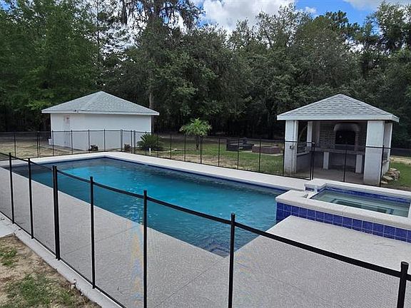 Spacious, executive style pool home on a cul-de-sac in Marion Oaks. 4 bedrooms with 3.5 bathrooms. Large, newly built in-ground pool with spa and summer kitchen area. Fenced backyard. Kitchen overlooks large open living room with wood-burning fireplace. Additional room for use as home office. Pool service included in rent.