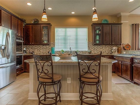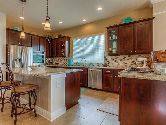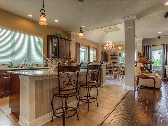 Must See! David Weekly beautifully built home. From the stunning landscaped yard and pavered driveway to the amazing interior of this fully upgraded single story "Grenada" Model which features 4 bedrooms 3 full bath and 2 half baths. Enter into an open floorplan with hardwood floors and a flex space that leads into a beautiful gourmet kitchen. The kitchen features an amazing island topped with exquisite granite and offers high end stainless steel appliances with a 5 burner gas stove, double oven and microwave. A vaulted wood ceiling adds height to the dining room which flows into a wonderful dedicated study area with a built in desk and cabinets. After a long day enjoying the outdoor amenities, retreat into the owner's suite where there is plenty of room to relax in your oversized king bed or enjoy a good book in your sitting area. The luxurious owner's bath has a granite vanity with dual sinks, a frameless glass shower and garden tub decorated with beautiful tile all the way to the ceiling. This split floorplan allows your guest to enjoy their guest suite with a private bath with the secondary bedrooms in a separate area. This home features a dedicated study area which is a great spot for everything from homework to gaming or a movie. An over sized covered screened lanai with a pool bath, provides a shady spot for outdoor relaxation to enjoy our perfect Florida outdoor living. Situated within a short distance from the Lake Clubhouse and across the street from a resort like community pool.